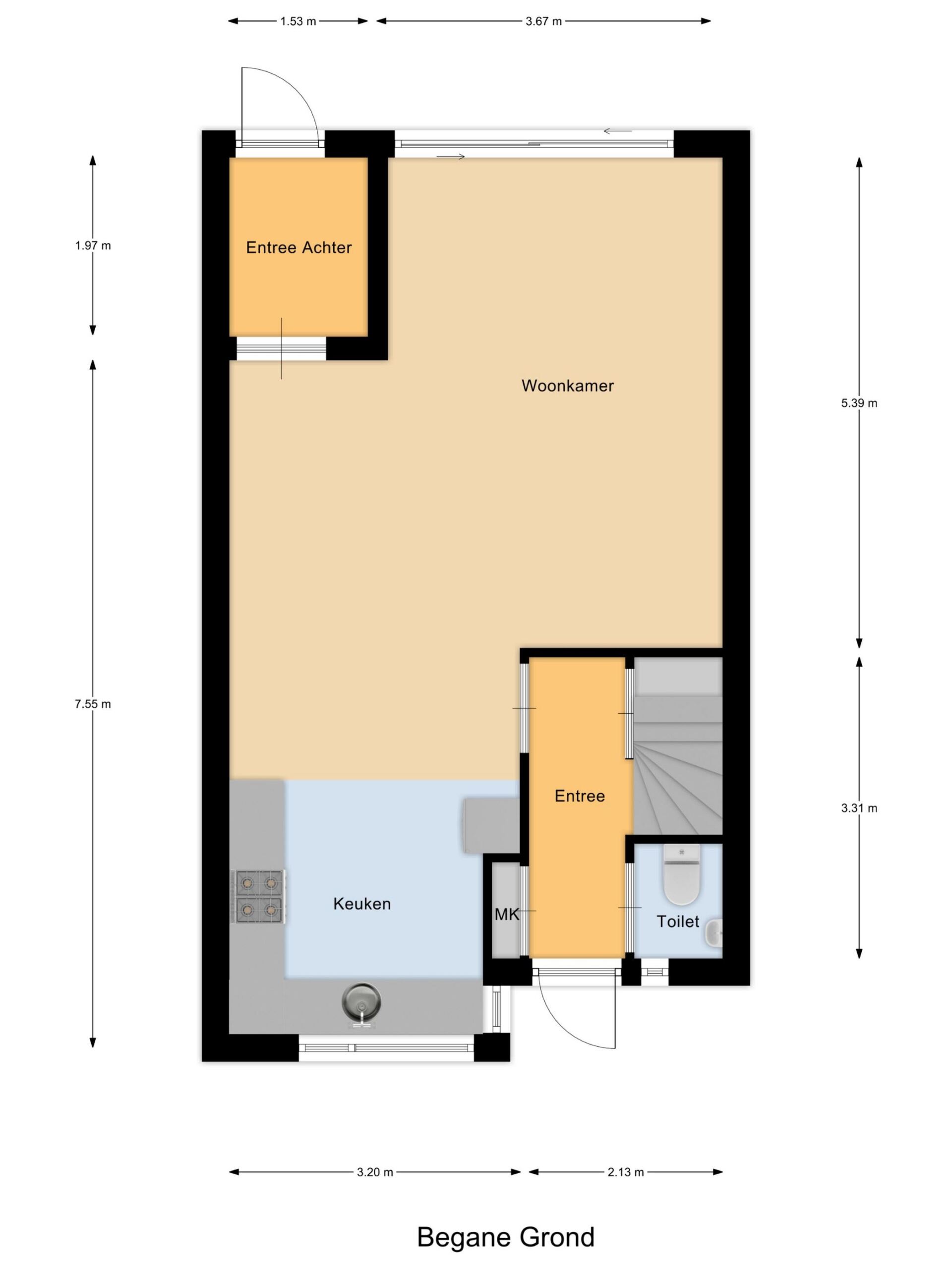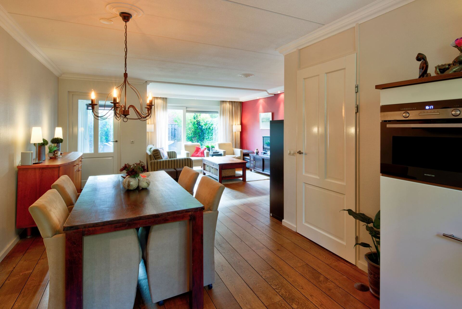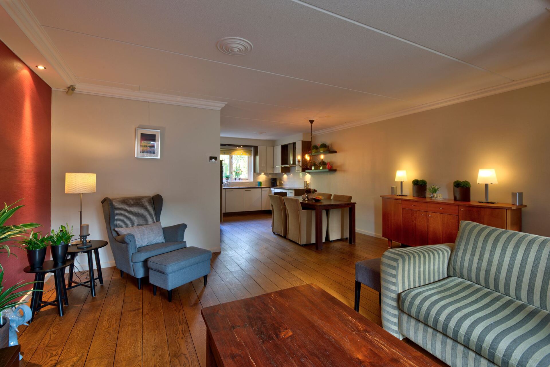Begane grond: (onderhoudsvrije voortuin) entree/hal, vrijdragend toilet met fonteintje, meterkast, nette L-vormige open keuken mét inbouwspots en v.v. diverse inbouwapparatuur zoals een 5-pits keramische kookplaat met afzuigkap, combi oven-/magnetron en vaatwasser. Een heerlijke ruime tuingerichte woonkamer met afgesloten entree/hal naar de goed onderhouden achtertuin welke is gelegen op het Zuidwesten en v.v. stenen berging. De tuin is ook achterom bereikbaar.