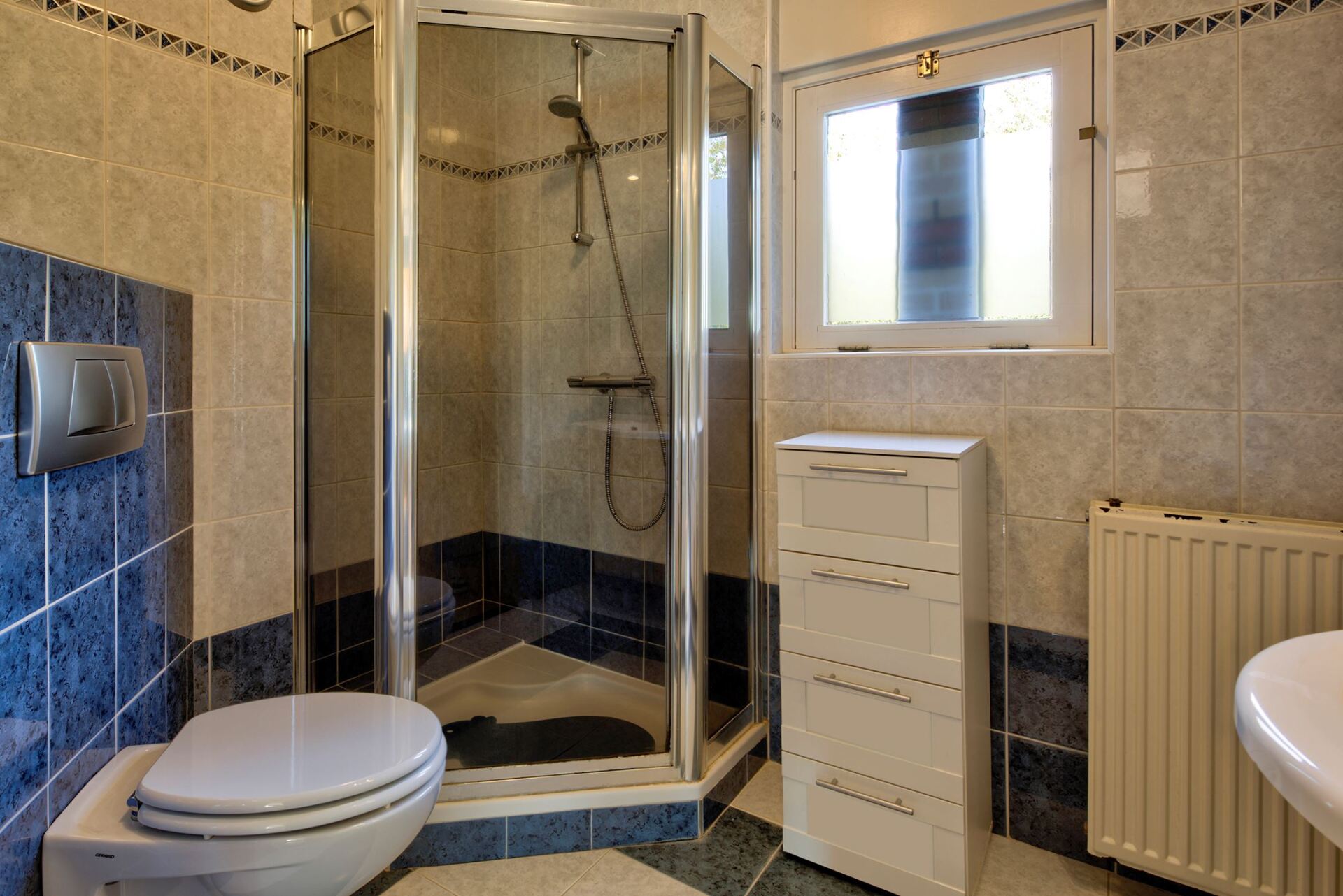 Eerste verdieping: overloop, 3 royale slaapkamers, achterzijde voorzien van nieuwe rolluiken (2021), de volledig betegelde badkamer is v.v. vrijdragend toilet, douchehoek en een wastafel met meubel.