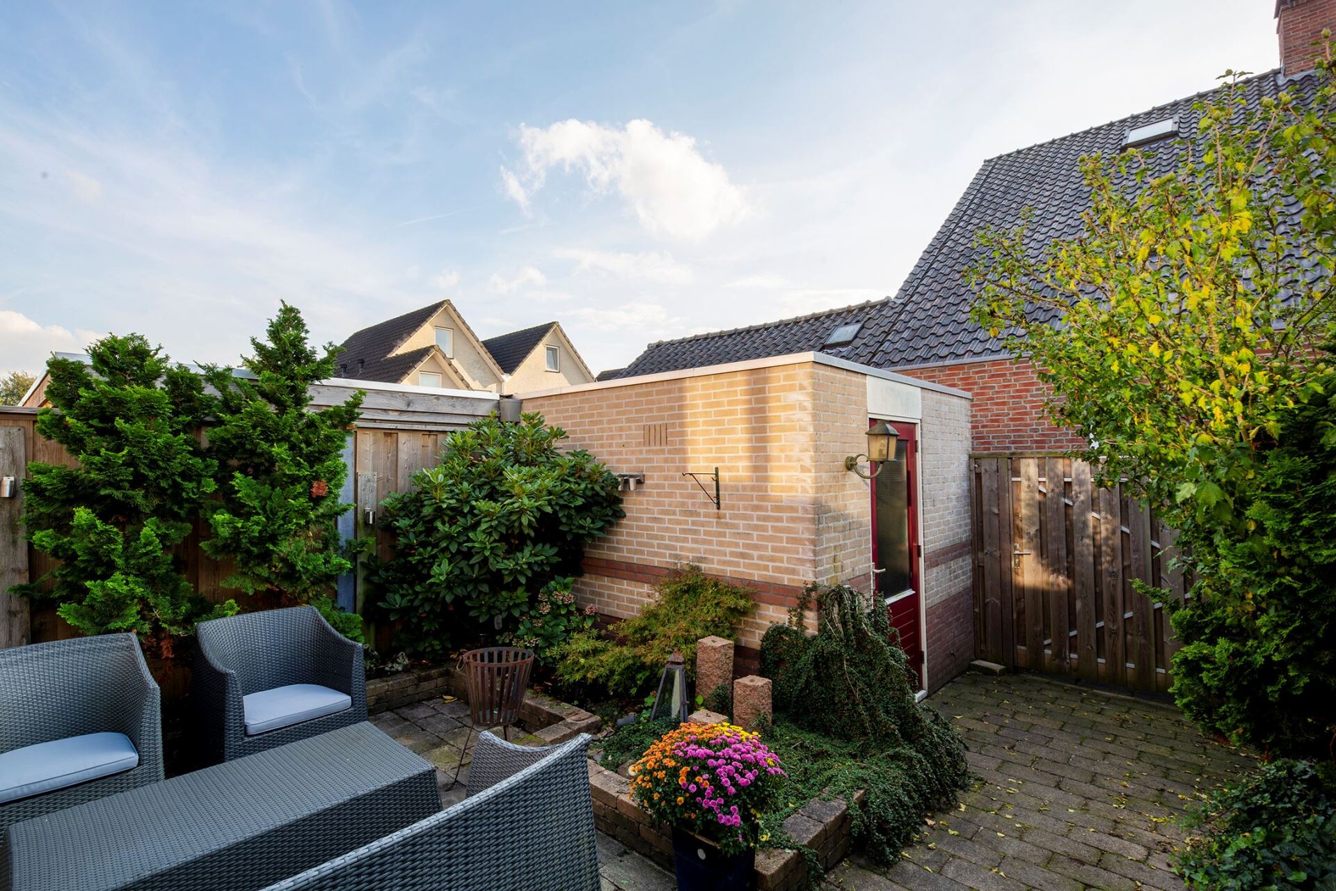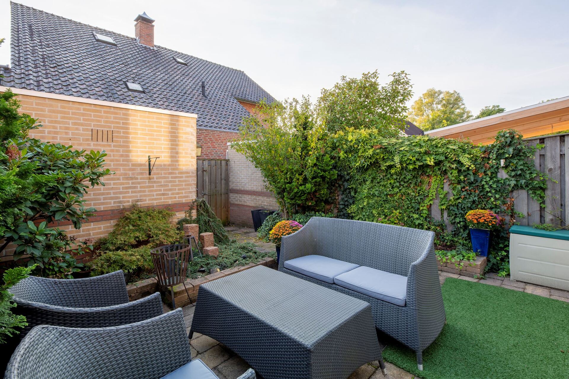 Voortuin vernieuwd in 2021. Zonnige achtertuin (wordt momenteel vernieuwd) gelegen op het Zuidwesten met achterom en een vrijstaande stenen berging. Achterzijde voorzien van zonnepanelen (2021).