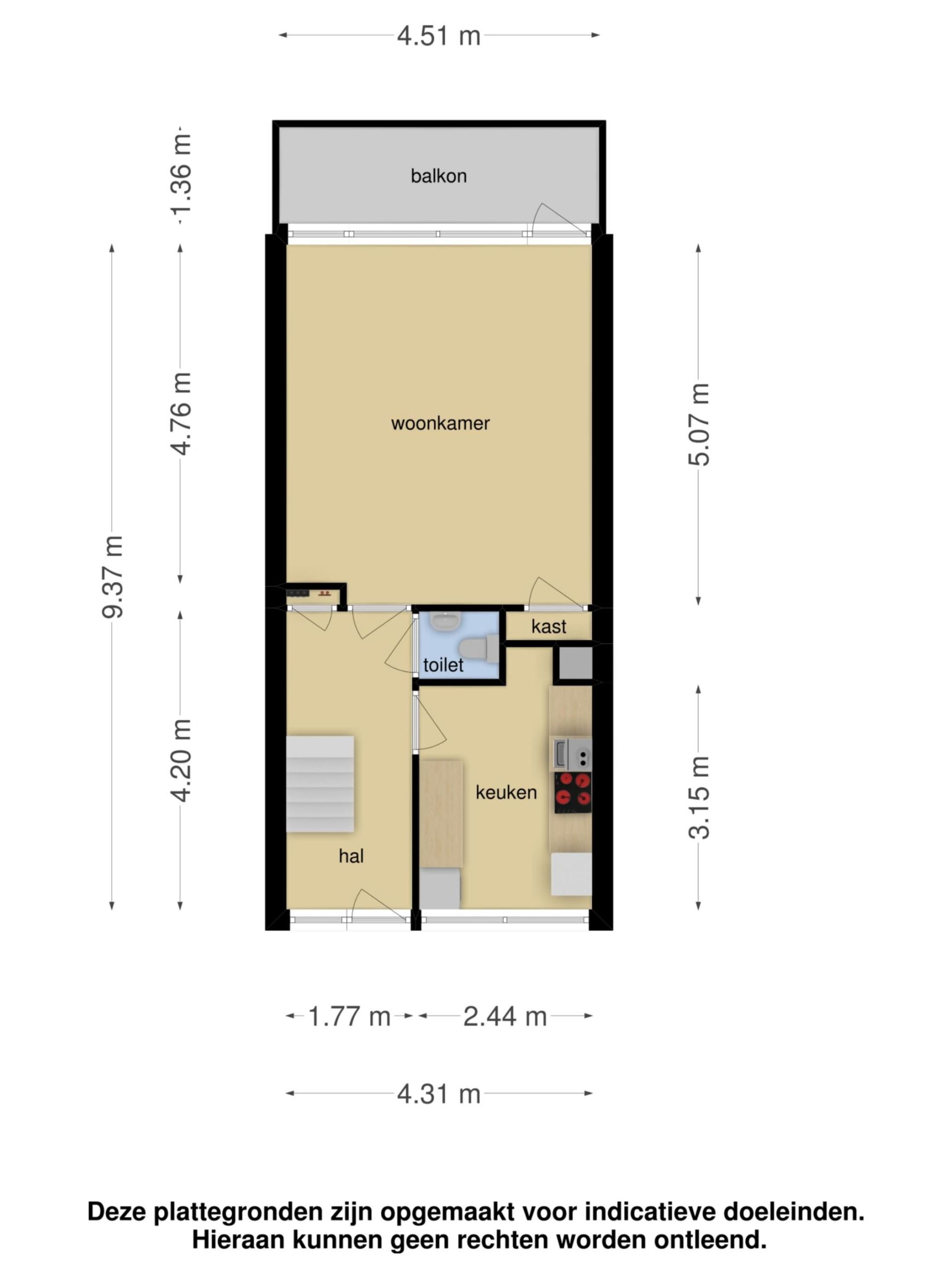 ruim en zonnig balkon over de gehele breedte van de woning.