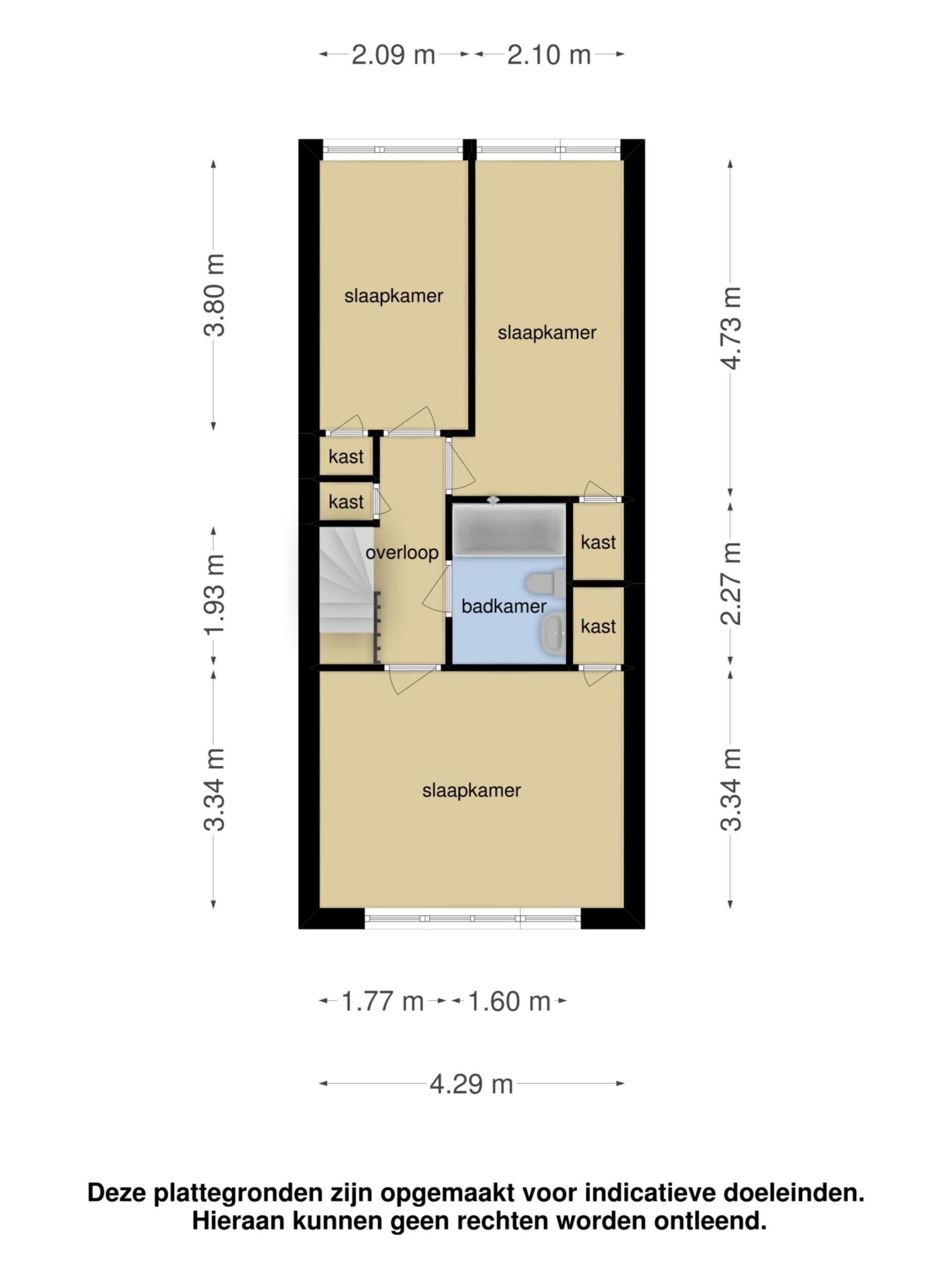 overloop met vaste kast, 3 slaapkamers met vaste kasten, lichte